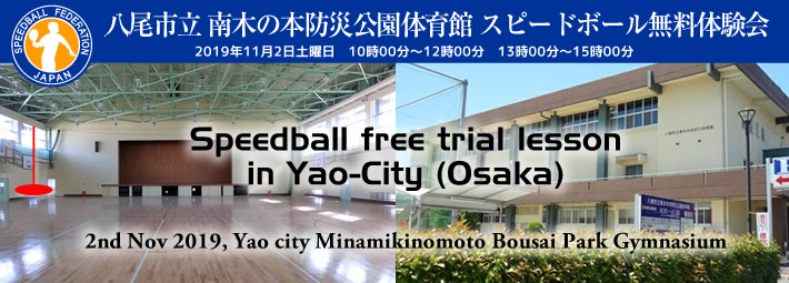 2019年11月2日土曜日の10時より、八尾市南木の本防災体育館にてスピードボール無料体験教室が開催されます。