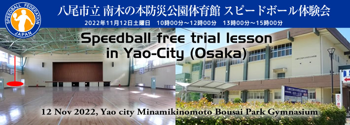 関西近畿地区 11/12(土)、八尾市南木の本防災体育館(大阪)でスピードボール体験教室開催!